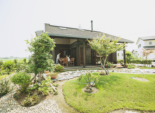 琵琶湖のほとり、豊かな自然を見渡せる土地には、丁寧に手入れされた素敵な庭が広がっている。「築山も遊歩道も自分たちでつくったんです。家庭菜園も順調です」と、にこやかに話すAさんは、のんびりゆったりした自然を感じることのできる暮らしに憧れ、ジャパネスクハウスのオーナーに。庭づくりに家庭菜園と、Aさん夫妻のおだやかな暮らしについてお届けします。