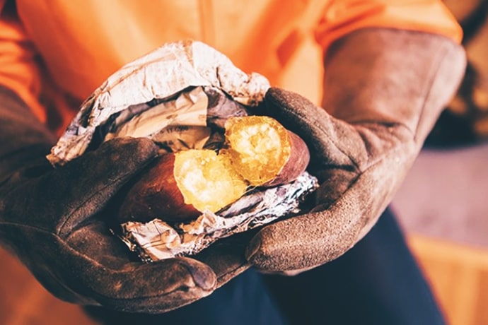 焚き火の火を見つめながらただボーッとしてもよし。小腹がすいたらマシュマロをあぶってみたり、焼きいもを焼いてみたり。自由に火と触れあってください。
